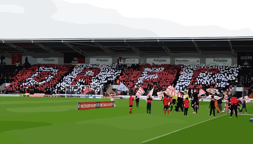 The Black Bank formed in 2015 with the aim of creating a dedicated area for the most vocal Doncaster Rovers supporters to stand shoulder to shoulder with fellow fans who express the same feelings.