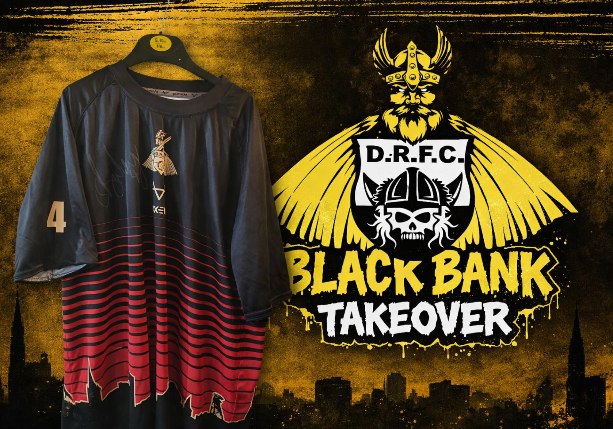 Up for grabs are the signed, match-worn player warm-up shirts from the unforgettable Black Bank Takeover game 👊🖤